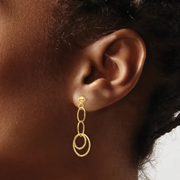 14K Yellow Gold Polished Textured Dangle Earrings Image 4 Diamond Design Jewelers Somerset, KY