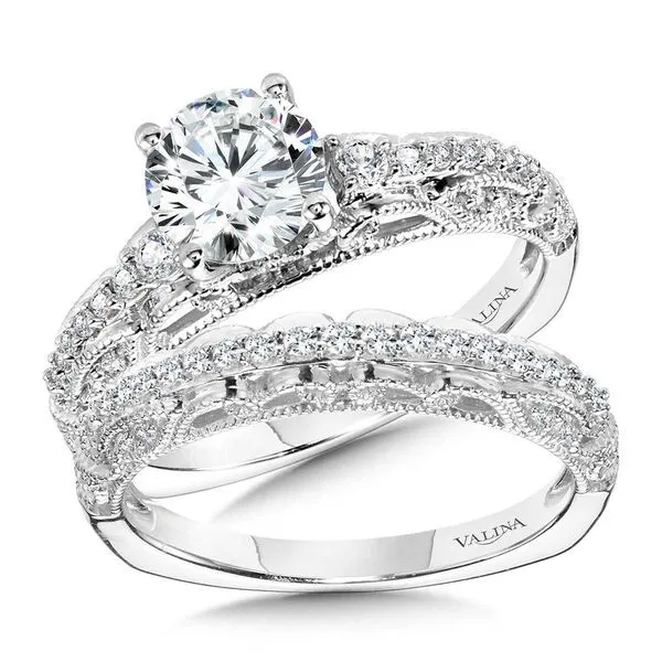 Experience the Look of Love with the Valina Bridal Collection! The Look of Love refers to the eternal promise made by a couple on their wedding day. This is represented by our signature diamond set on the side of the ring shanks. When the engagement ring and band are worn together, the two diamonds line up, signifying the joining of the couples lives together! This exciting collection allows you to purchase a designer engagement ring without sacrificing quality or style. When two lives join together as one, they represent the eternal bond of marriage: The Vow of Commitment. Embody your marriage vows by proudly wearing the Valina Bridal Collection!