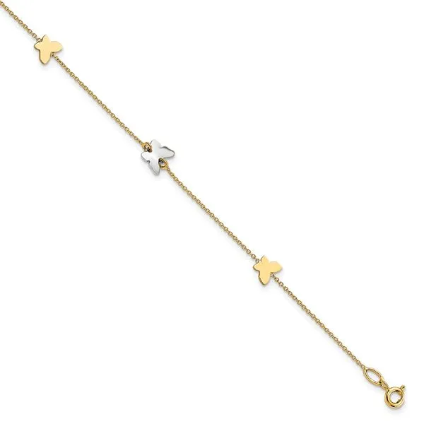 Leslie's 14k Two-tone Polished Butterfly w/ 1in ext  Anklet Image 4 Diamond Design Jewelers Somerset, KY