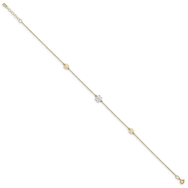 Leslie's 14K Two-tone Polished Flower with 1in ext. Anklet Image 4 Diamond Design Jewelers Somerset, KY