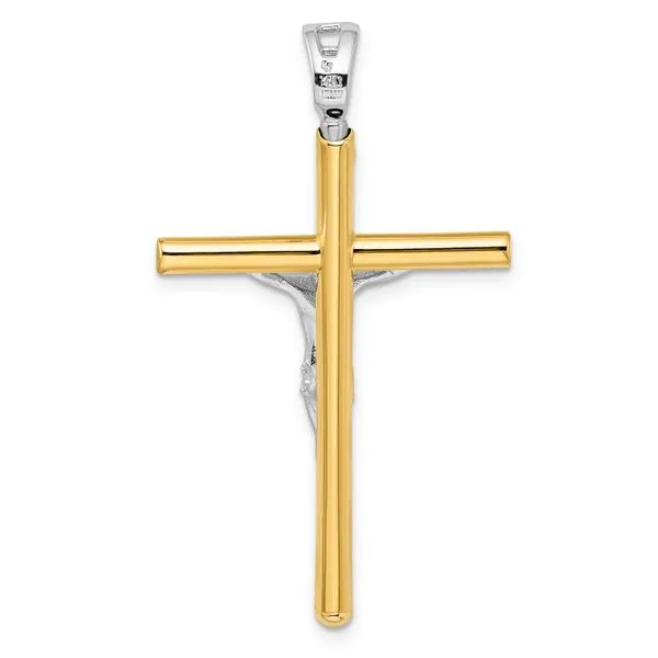 Leslie's 14K Two-tone Crucifix Pendant Image 4 Diamond Design Jewelers Somerset, KY
